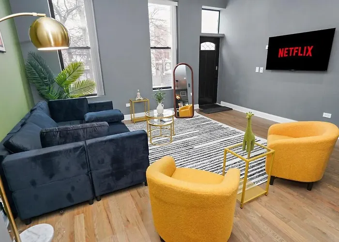 The Art Institute of Chicago is within 7 km of the spacious apartment and the 184 - acre Garfield Park Conservatory is located 2.4 km away. The skyscraper 360 Chicago Observation Deck is around a 15-minute ride from the apartment.